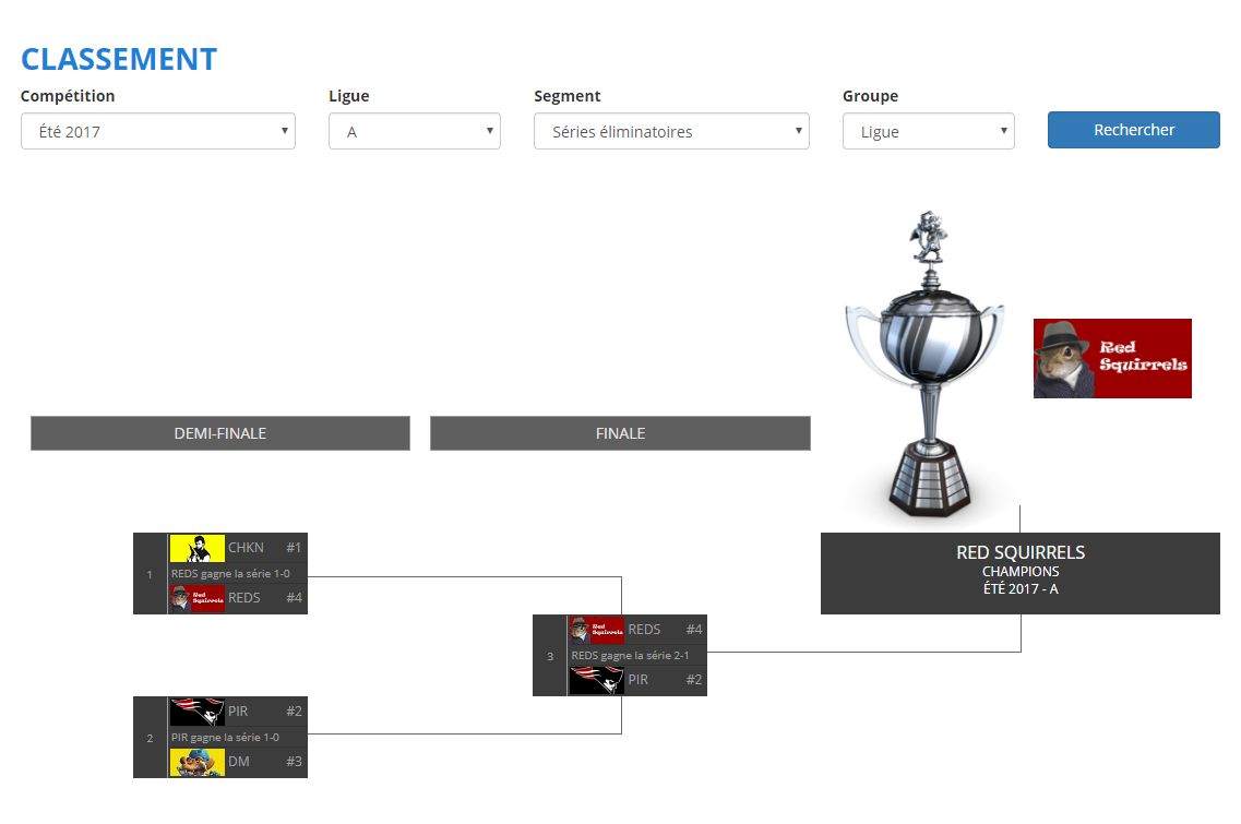 Bravo aux nouveaux champions : LES RED SQUIRRELS