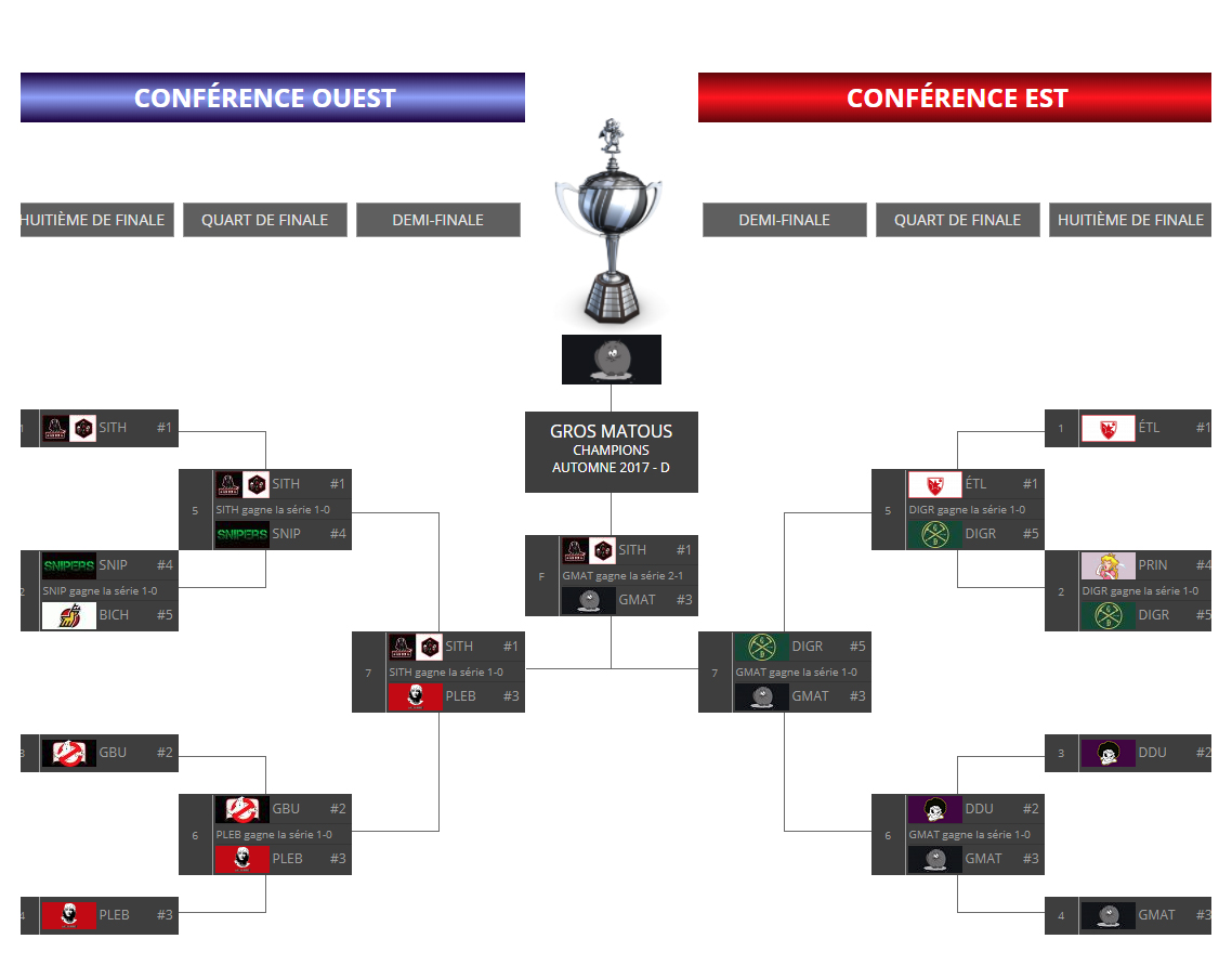 Voici l'album photo des séries éliminatoires de la Ligue ProCosom - Saison Automne 2017 - Catégorie D (Amical)